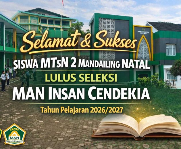 Kabar membanggakan datang dari MTsN 2 Mandailing Natal. Sebanyak sembilan siswa terbaik berhasil lulus seleksi masuk Madrasah Aliyah Negeri Insan