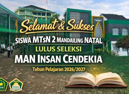 Kabar membanggakan datang dari MTsN 2 Mandailing Natal. Sebanyak sembilan siswa terbaik berhasil lulus seleksi masuk Madrasah Aliyah Negeri Insan